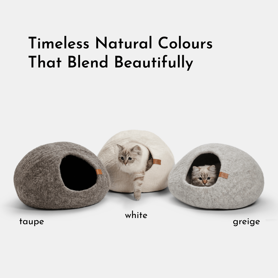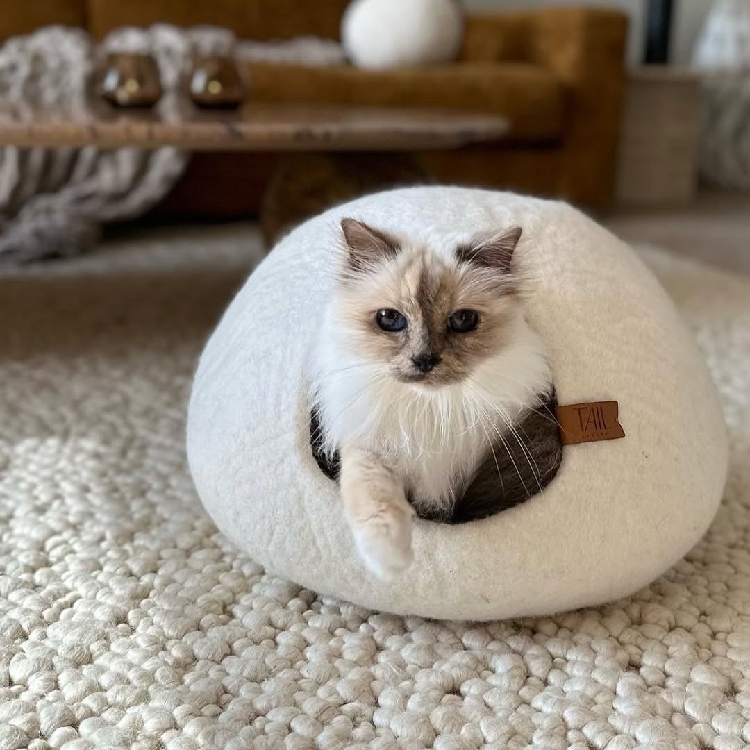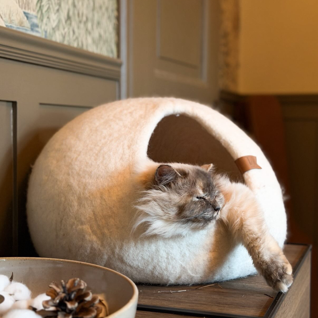 Ull är ett naturligt och luftigt material som skonsamt reglerar temperaturen — det håller din katt varm och mysig på vintern och sval på sommaren. Till skillnad från syntetmaterial tillåter ull luften att cirkulera, vilket skapar en balanserad och inbjudande viloplats året runt.